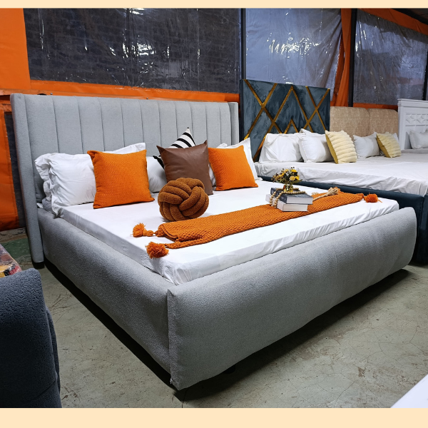 The Fabric Bed features a soft, upholstered frame, plush headboard, and sturdy construction for lasting comfort and style. Perfect for creating a cozy, elegant bedroom.